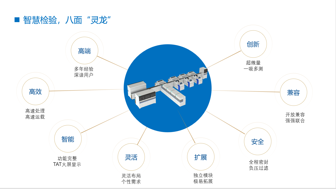 2015年藍怡上市第一代BRS流水線,作為國內第一家布局流水線的廠家,藍怡堅持以開放兼容的姿態,擁抱行業的變化,此次發布的全新一代流水線是完全的國內制造,藍怡目前也實現了從流水線,生化,免疫,過敏原,糖化五個領域儀器和試劑的全部自主制造,“靈龍”流水線不僅從產品外觀上做了全新的設計,也在檢測速度上做了升級,流水線整體綜合速度900管/小時,屬于國內流水線獨一檔的存在,全程單管傳輸,全封閉軌道設計,將科室的安全放在第一位,個性化的布局,靈活的擴展方式,擁抱兼容,創新式的超微量技術,八大特點加持,相信靈龍流水線的問世,可以給到未來的流水線市場更多的選擇。